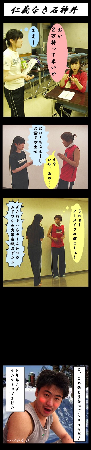 松を篭絡してパスワードをGETしたので書き込み放題だね。 今後稽古場を盗み撮りしたのとかUPするぜ。のほほ。 とりあえず今回はこんなもんでかんべんな。あと飛行機だけはかんべんな。 |